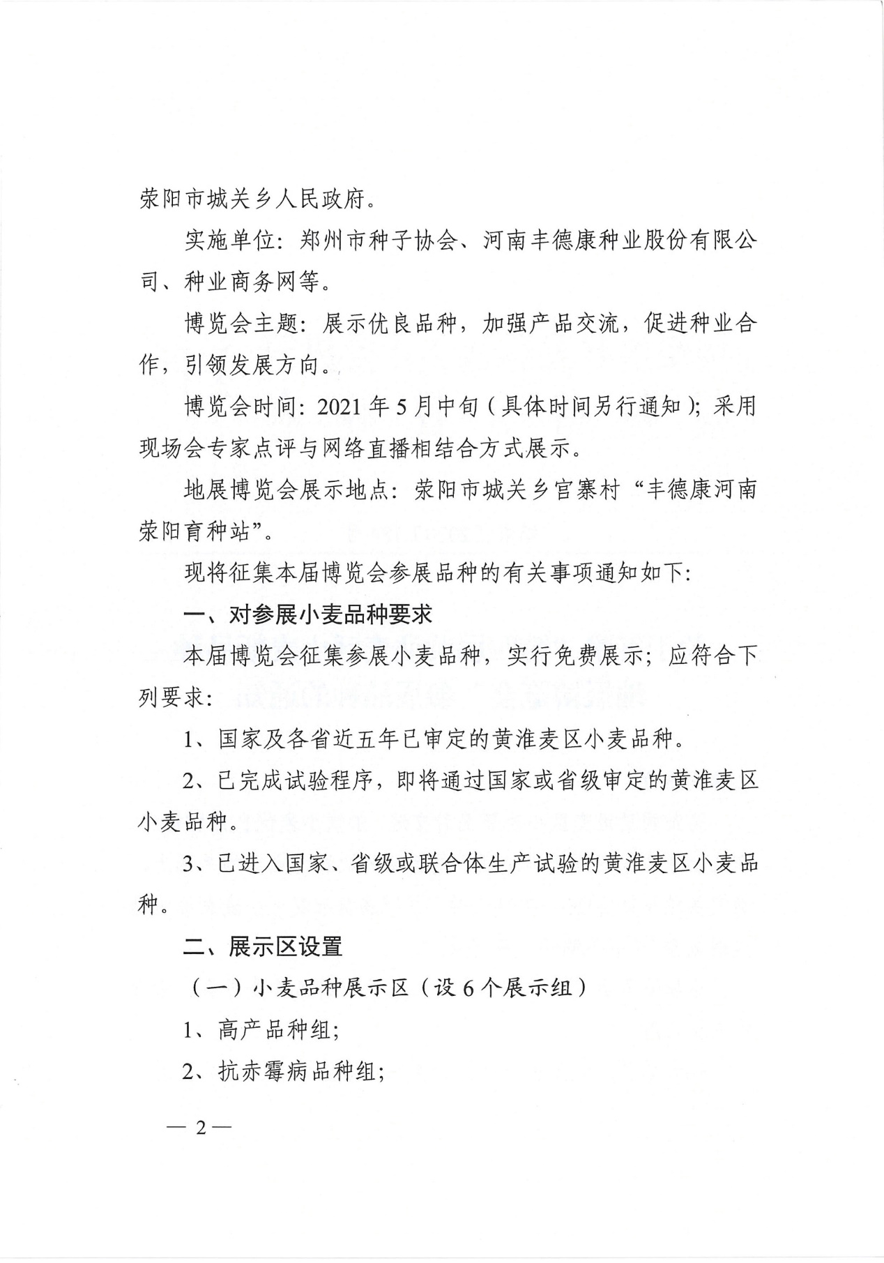 关于征集“第四届黄淮麦区小麦新品种地展博览会”参展品种通知